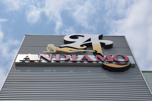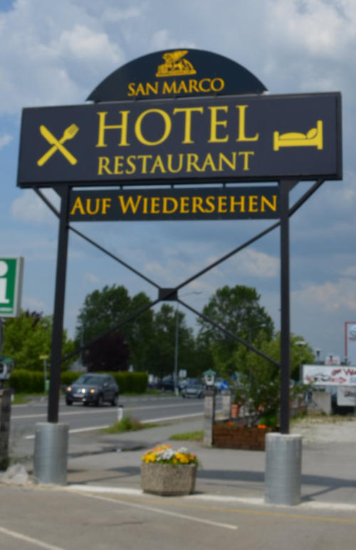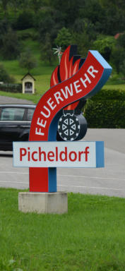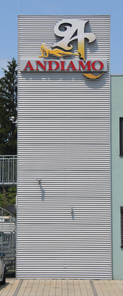 Logos und Schriften ausgefräst und mit Plexiglas in den jeweiligen Farben hinterlegt.
