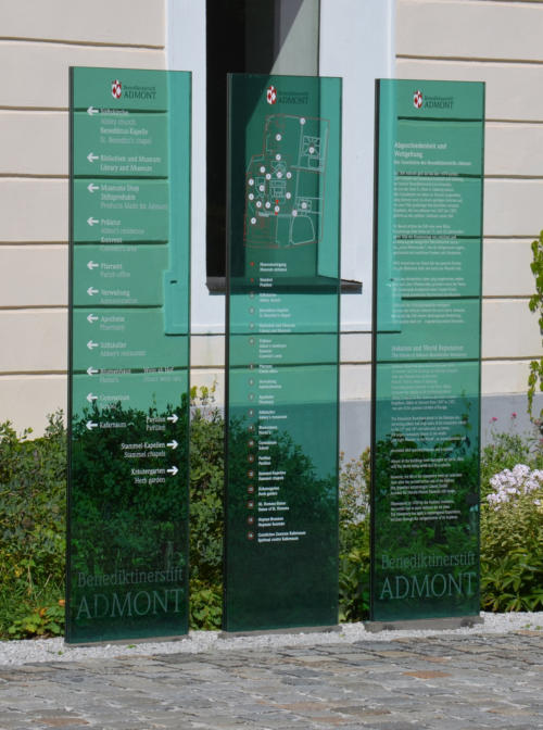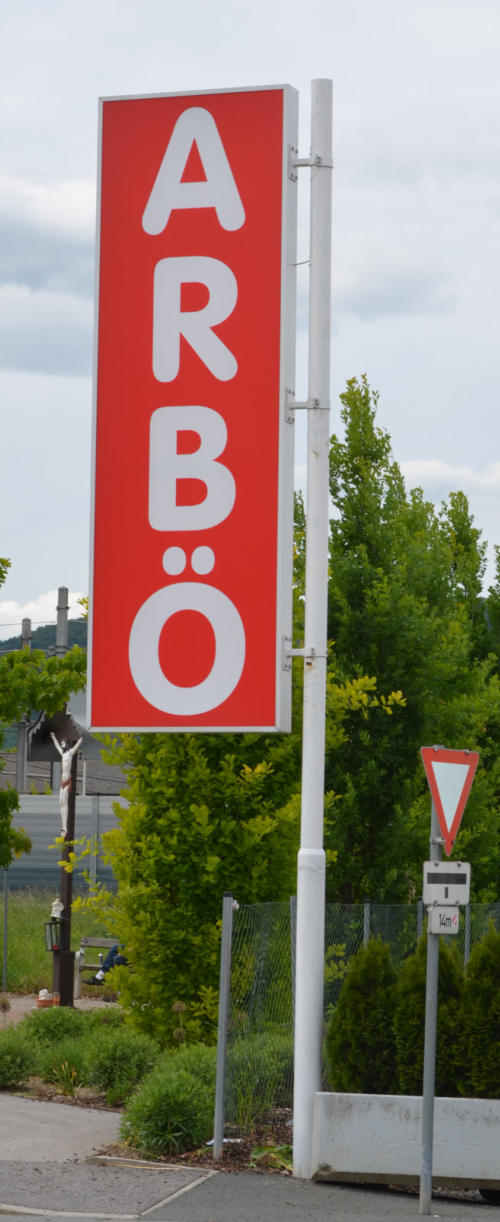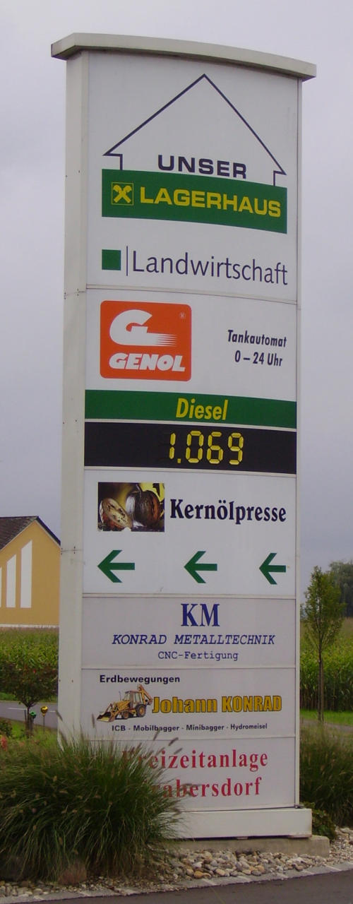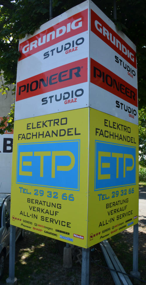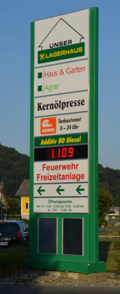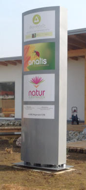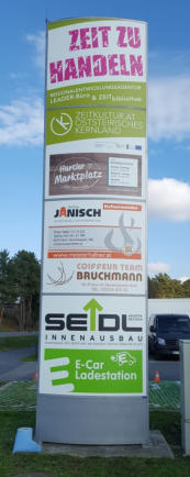 Werbetürme mit LED Zargenausleuchtung Fronten mit Plexiglas bzw. Aluminium